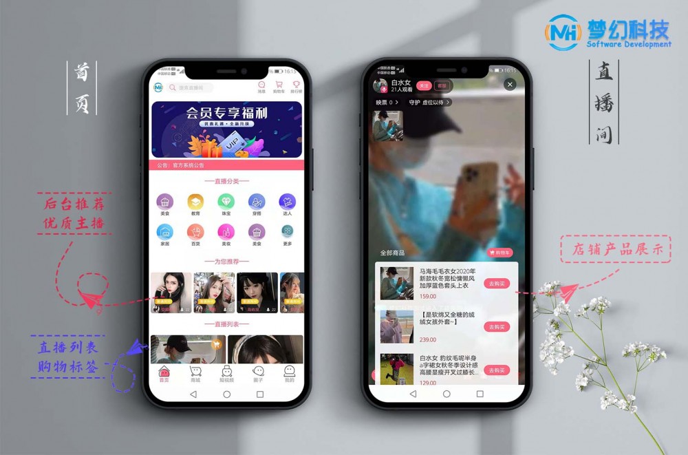 商城直播APP演示:http://ff.mhuan.shop/app.php/3