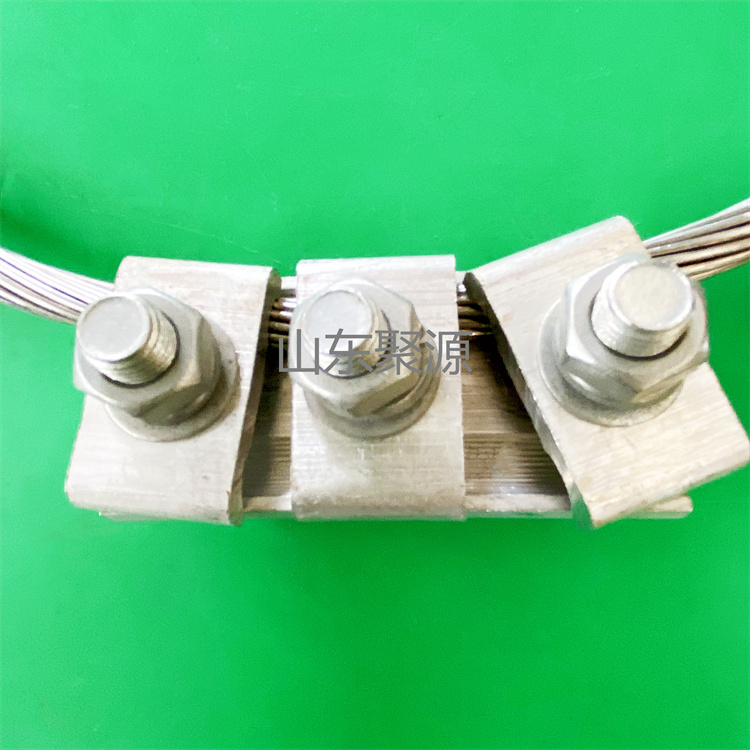 主要作为OPGW接地用,OPGW接地线夹由一段铝合金线和一个铝合金线夹(连接OPGW光缆),以及全铝接线端子(连接铁塔主材)构成,总长有1.5m~3m,结构紧凑,导电性能优良,可适用不同的短路电流容量。