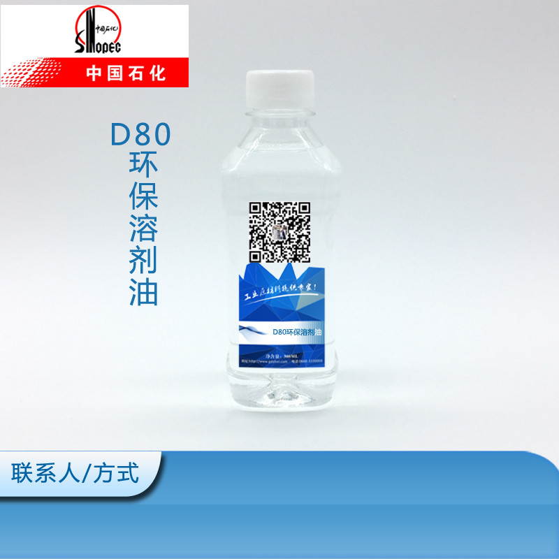 D80环保是以加裂馏份油或低直馏航煤为原料,经深度加氢精制后分馏而成。它的性能优点为溶解力强,挥发性好。饱和烃含量大于99%,产品性好。产品馏份窄,也可度身服务。产品低、低芳、、无异味。