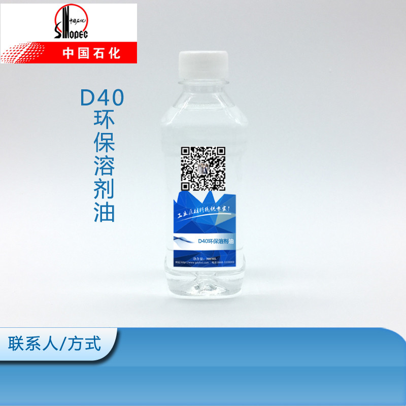 D40环保是以加裂馏份油或低直馏航煤为原料,经深度加氢精制后分馏而成。它的性能优点为溶解力强,挥发性好。饱和烃含量大于99%,产品性好。产品馏份窄,也可度身服务。产品低、低芳、、无异味。