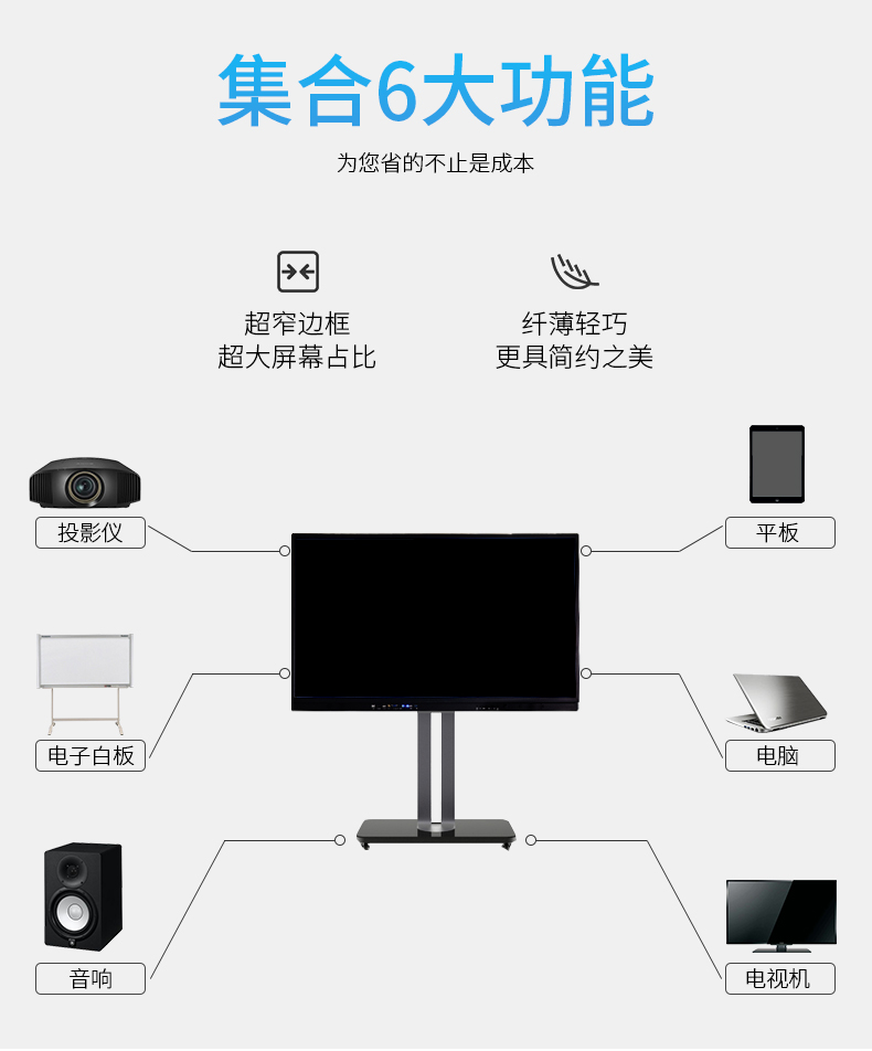 l 智能化一体机,悬浮菜单三指触屏跟随、五指触屏休眠;