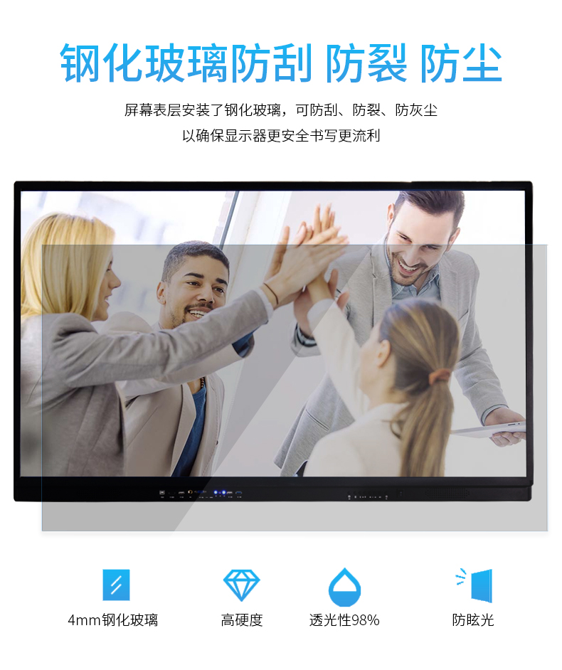 l 防爆钢化玻璃,莫氏 7 级硬度,安全有保障;(可选配AG 防炫光玻璃)书写体验更佳;