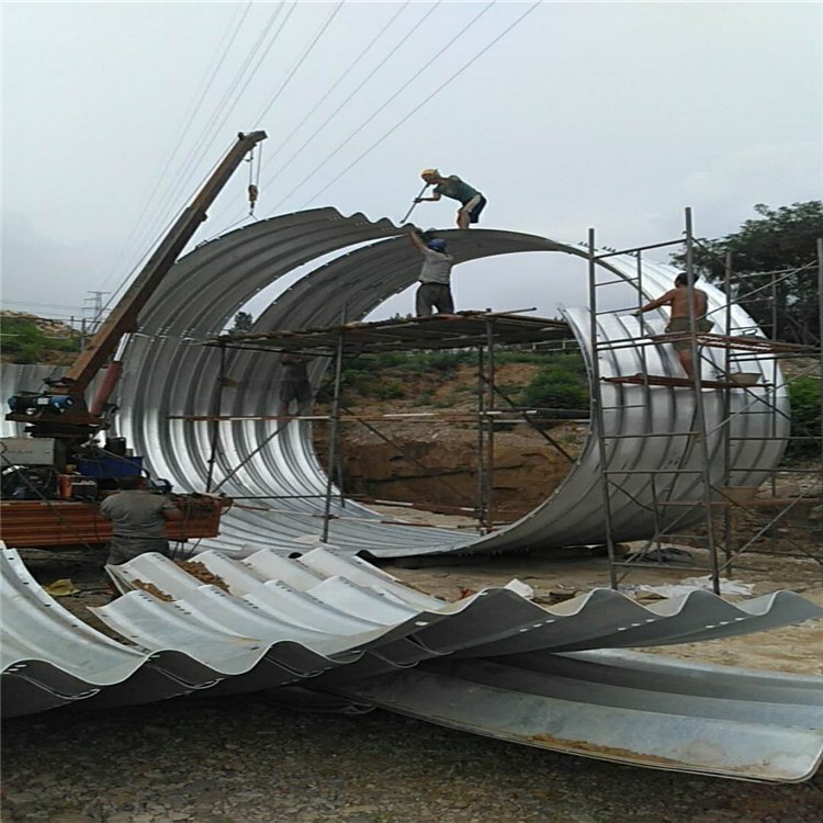 4.钢波纹涵管采用标准化设计、工厂加工生产,生产不受环境影响,进行集中工厂化生产,生产周期短,适用于质量要求高,工期紧,基础差的工程项目。