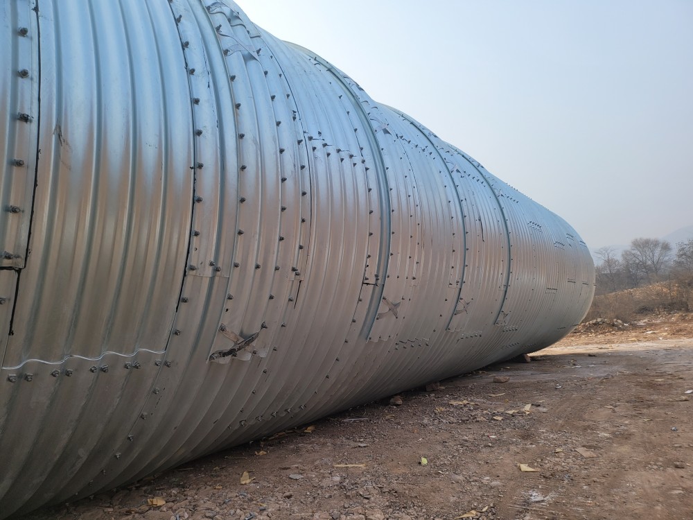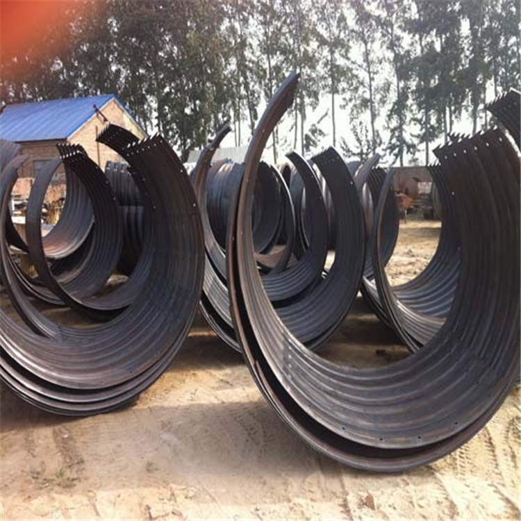 整装钢波纹管涵组装大致分三步,根据涵洞的实际情况排放管涵。安装的时候从一测排放一根管,但是要使管子中心和基础纵向中心线是平行的,同样的再把另一根管放置jiu位,当两根管相邻法兰盘间距为3-5cm时,用小撬棍对准法兰上的螺丝孔,使其两根管法兰上的螺栓孔对正,这个时候从后放的管子另一端用撬杠来撬动管节,使其纵向平移,目的是让两个法兰间距保持在2cm左右,然后全部穿上螺栓,但此时还不需要紧固,开始镶嵌shimian盘根,但是镶嵌的时候由于现场地势原因,有时相邻两法兰间间距太小,这时需用手锤、凿子把间距凿开大约1cm的缝隙,用螺丝刀把盘根镶嵌垫在两法兰之间。有时管子顶部两法兰间距较大,这时需用绑丝把盘根绑在螺栓上固定好然后人工开始对称锁紧螺丝,直至从外观看两法兰间距有2-5mm的缝隙即可。这是才需紧固好螺栓,管涵安装完成,以此类推安装剩余管节。待整道涵洞的管涵安装完场后再用千斤顶校正,使其中心在所规定的中心线上即可。