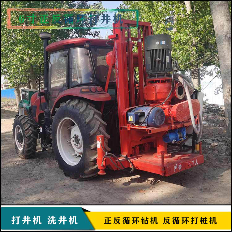 漯河临颍县华豫机械厂生产的,拖拉机改正反循环钻机,拖拉机可以选全新或者二手的,一般选用100马力的,可以使用三相电或者发电机,发电机一般是前置的,可以当做配重;