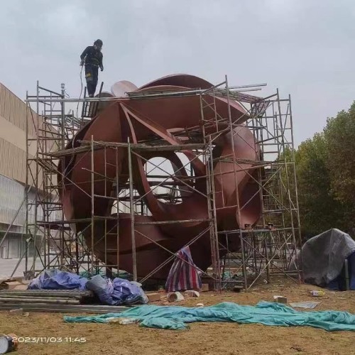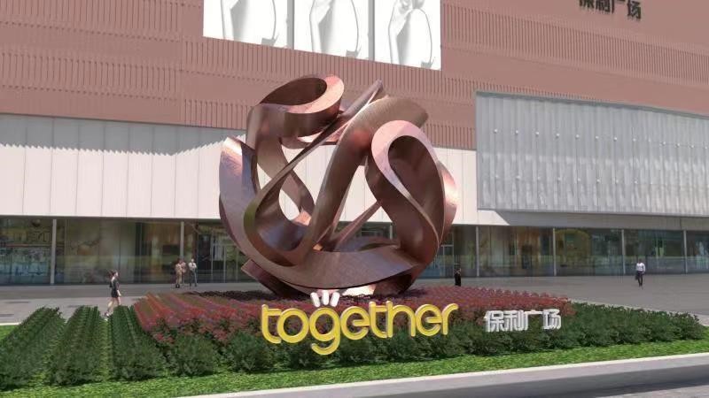 保利广场铁绣球摆件 不锈钢球雕塑安装图
