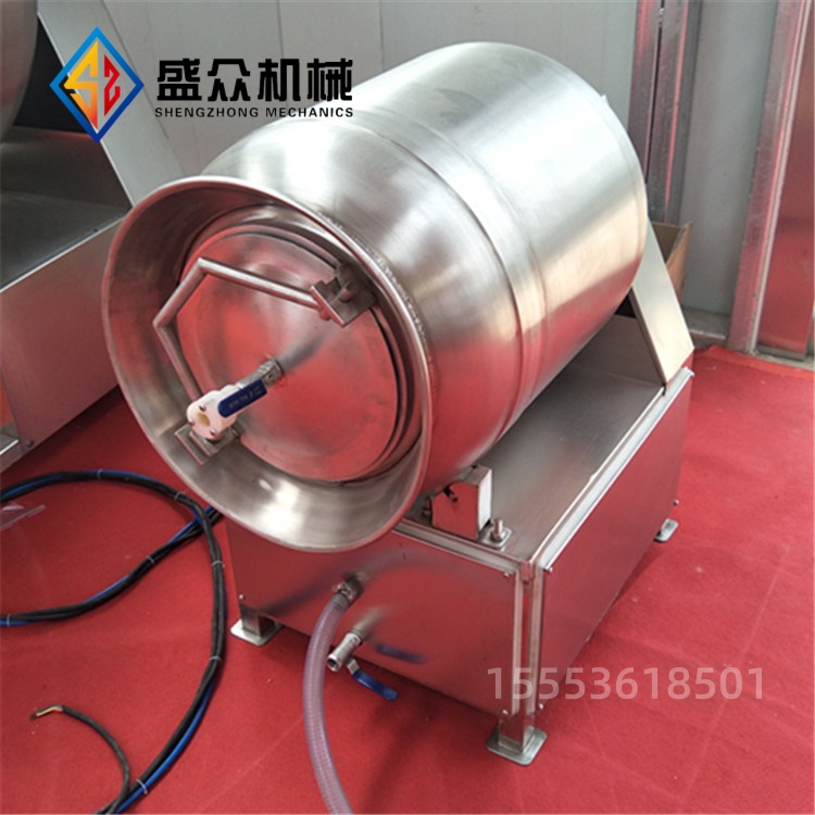 真空滚揉机又称真空腌制机、滚揉机、拌料机也可以叫羊肉真空滚揉机、牛肉真空腌制机、猪肉真空拌料机、鸡爪滚揉机、鸡鸭真空滚揉机等等。真空滚揉机的型号有:GR-20L、50L、100L、200L、300L、500L、600L、800L、1000L、1500L、1800L、2000L。我们对真空滚揉机进行了升级,可以使肉制品充分腌制、拌料、嫩化、自动吸料,做出来的肉感好、成色鲜美。(食品加工机械厂家Tel:155*5361-8501)