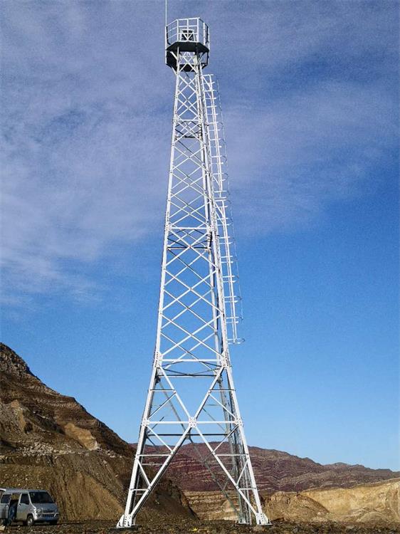 主要功能:执勤人员观测瞭望。 用途:学校、广场、停车场、高层建筑、森林防火,海滨浴场,重要旅游景点等部门 特点:占地面积小,节约土地资 ,选址便利塔身自重轻,运输和安装便捷、建设工期短。设计符合钢结构设计规范和塔桅设计规程。 抗损能力:风10级/地震6级 高米以上 ; 防腐处 理:热渡锌 材料产地:宝钢/首钢/邯钢/唐钢等 有效使用期:30年以上 售后服务:5年免费维修,终身保修 .塔适用于特殊行业,适用于厂区及重要区域管理的人为观测或电子监测。如:环境监测、管理等。其材料组成有圆钢、角钢、钢管等结构。也可用铝合金结构,做成轻铝合金塔。把产品安置在楼顶上。以减少占地面积。我(厂)公司根据国标生产的监视铁塔塔。结构合理,造型美观,产品防腐处理热镀锌,防腐时间长。 监视塔无须外表维护,安全使用长达 50年。是理想的登高望远设备。