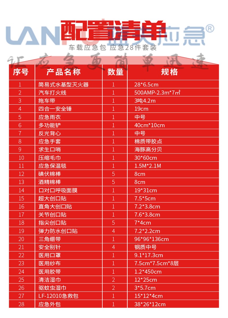 主要功能:车载应急、消毒清创、伤口包扎等。