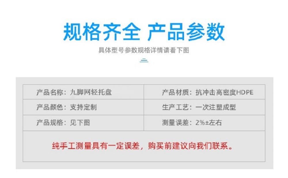 托盘腿部采用加厚镂空设计,增加托盘抗压性的同时防止腿部不积水。