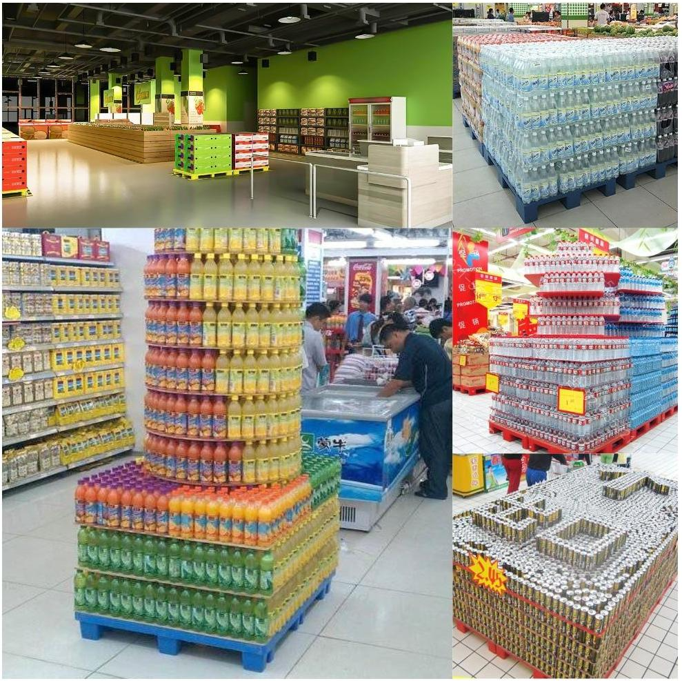 广泛应用于商场超市、物流运输、大型连锁、仓储周转、货物垫仓、轻型货物、防潮垫板等。