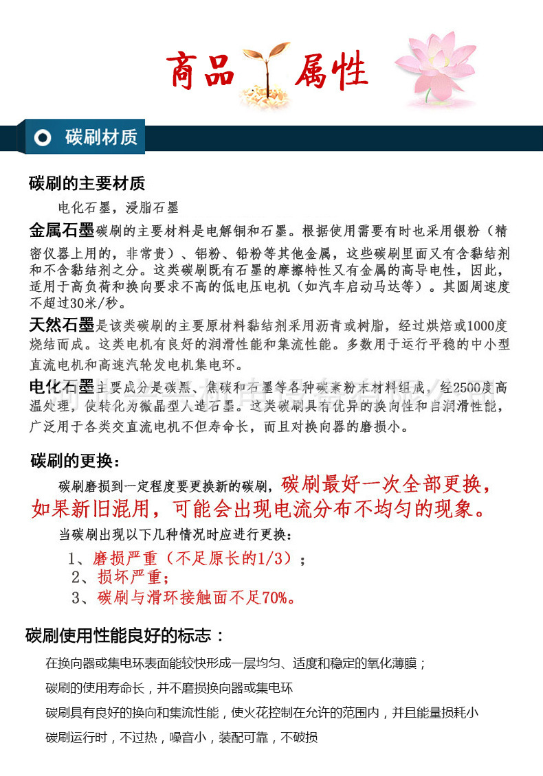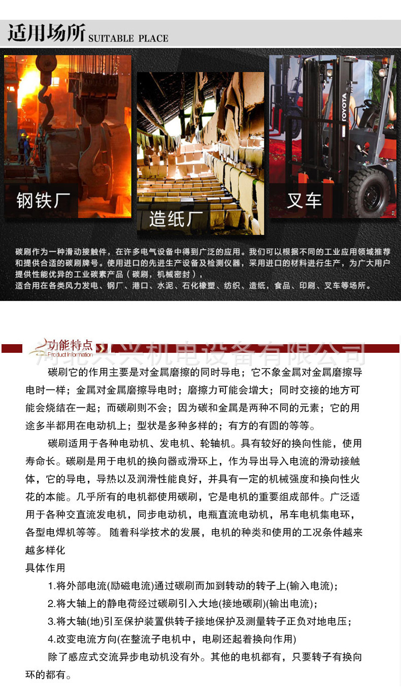 c 碳刷具有良好的换向和集流性能,使火花抑制在允许的范围内,并且能量损耗小。