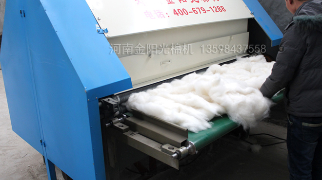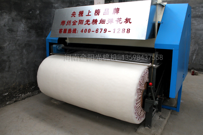1、棉花出得像纸一样薄,正反两面都带拉丝,如同(人)头发用梳子梳理过一样,光滑、顺溜、细腻、平整、好看,这是优于其他厂家弹花机的一个重要特点。