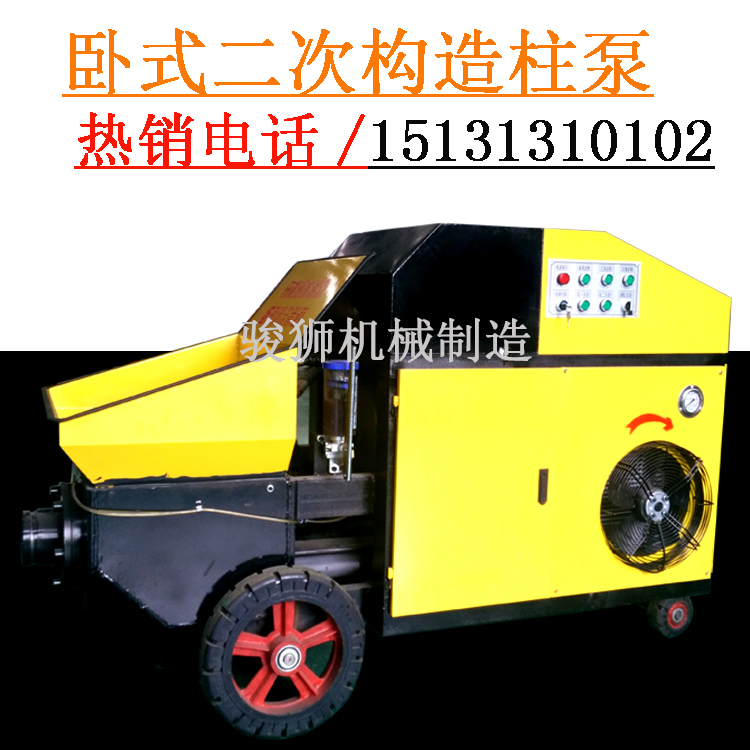 二次构造柱泵是一种复合泵送要求的构造柱泵,通过水平或垂直安装的管道,连续输送到浇注现场的细石混凝土输送设备,广泛应用于二次构造柱填充、地暖工程、屋面、高层建筑的墙、水库、水电站、港口、码头、基础处理、软弱地基、加固注浆、隧道、地铁、矿山施工中回填灌浆锚杆支护。