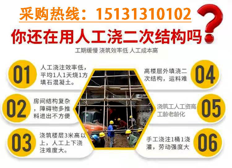 5,微型细石混凝土泵很快成为了快速浇筑各类二次构造柱的专业利器,重量轻、体积小、可靠性高、浇筑速度快、操作简单、易维护等完全根据工地实际需求。