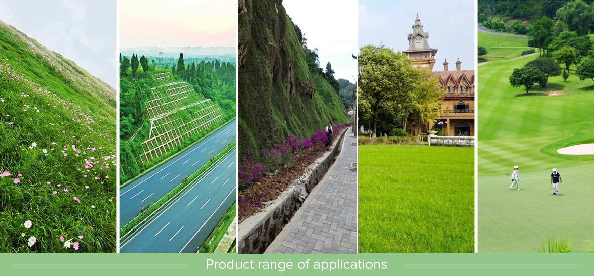 高速公(铁)路边坡绿化、低边坡、创面山体复绿、垃圾填埋场无土覆盖、矿山复绿、荒漠治理、河堤防护、养护洒水、大规模绿地重建等绿化工程。