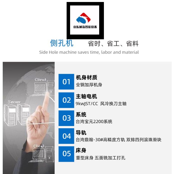 FH-2600系列侧孔机主要是用来解决数控开料机无法打侧孔、普通气动排钻打孔度不高、需要反复定位的问题。这款设备简单实用,各种孔位模式随意选择,雷达探头感应,见孔打,对操作人员技术要求不高,简单易学,零出错,真正摆脱了传统加工方式对排钻大师傅的依赖,既降低了人工成本,又提高了效率,避免了因人工失误造成的浪费。该方案适用于中小型板式家具加工厂。