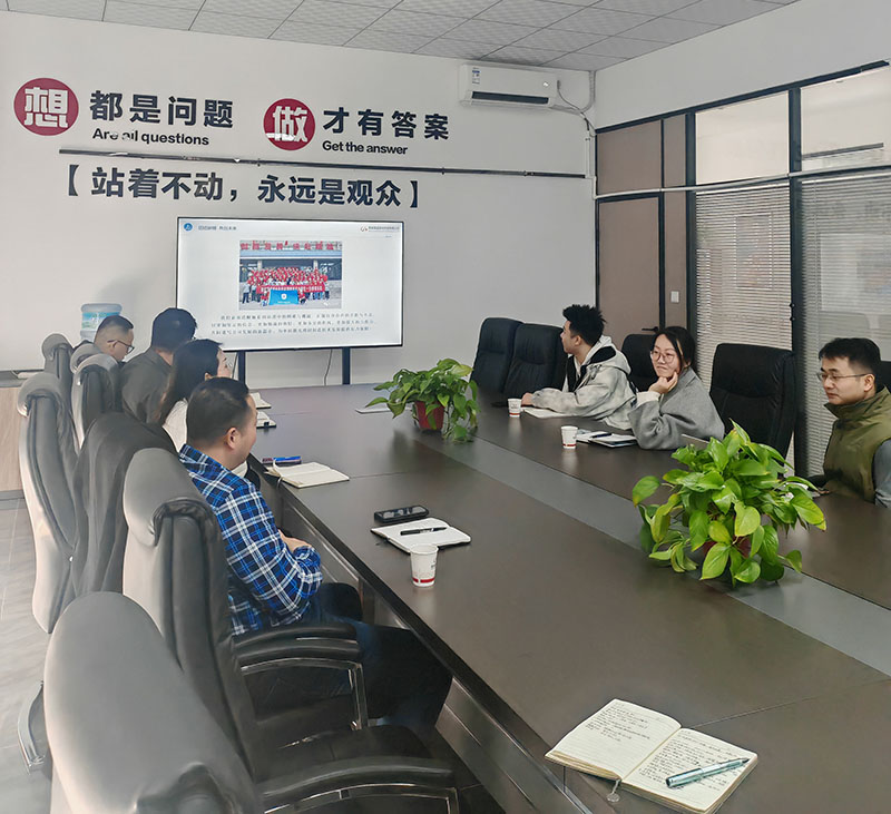 参观结束后,双方在公司的多功能会议室举行了座谈交流会。会上,西安国盛激光的贺副厂详细介绍了公司的发展历程和主要产品,以及公司产品这几年在石油、化工、钢厂、航天方面的应用案例,在激光技术领域的研发历程、核心技术、市场应用情况以及未来发展规划。