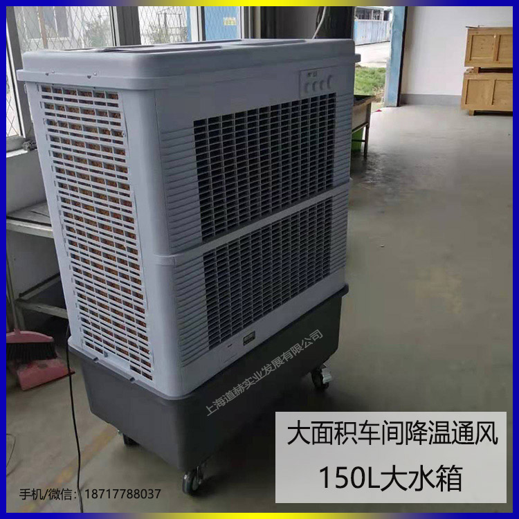 具有通风、降温等多种功能;室外的新鲜空气经过蒸发式冷气机过滤并降温后源源不断地送入室内,并将室内带有异味、灰尘、温度较高的浑浊空气排出室外,使室内的温度得到降低、提高空气的含氧量、空气质量;制冷能力强、高风压、风量大、远距离送风。三档风速可选;可满足150平米的通风和降温的需求;可连接供水系统进行持续供水;使用灵活,万向转动轮,插电即用、方便移动、可迅速更换工作位置。大面积吹风降温。即可用于操作人员降温,也可用于现场降温设备