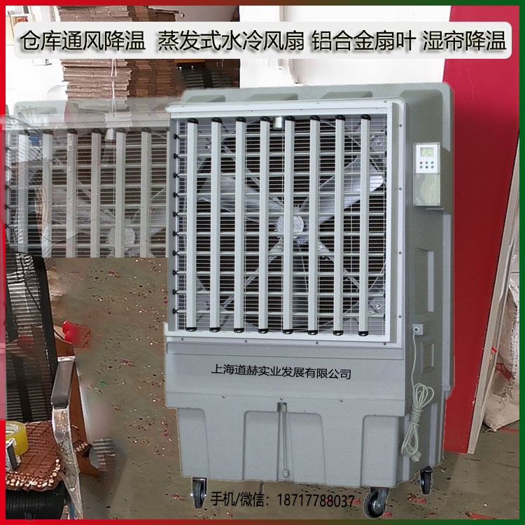 道赫移动式环保空调是一款可以放在地上移动推着走的环保空调,插上电,加上水能用,随时移动,非常的方便。现在越来越多的客户选择使用移动式环保空调,比如网吧、户外餐厅、体育场馆等都在使用。