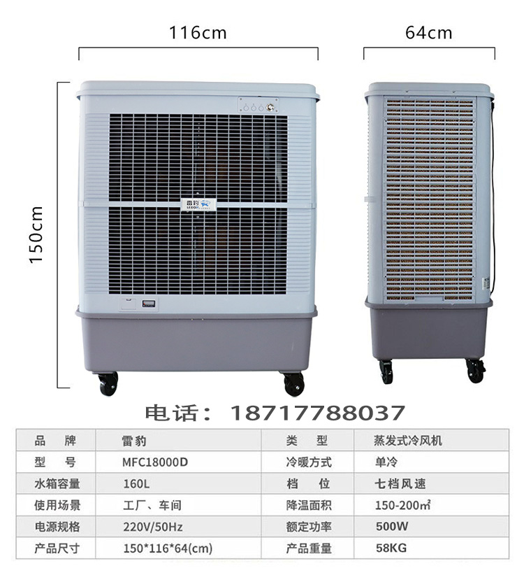 雷豹蒸发式冷风扇MFC18000冷风机生产厂家 咨询电话:18717788037