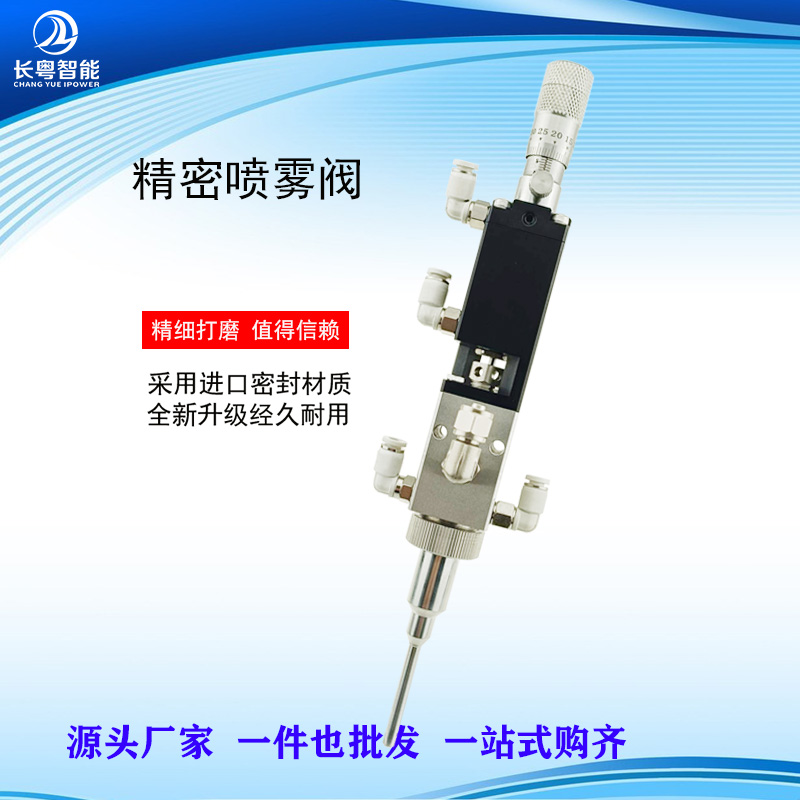 CY3612精密小雾化型喷雾阀门是一款用于中低粘度溶剂型液体的雾化涂覆阀,以圆形方雾化形式进行喷涂,适应多种液态流体物,如三防漆、涂层涂料、硅胶、环氧、UV胶、酒精、清洗液等流动性较好的表面涂覆材料。喷涂产品无飞溅,边缘整齐。可以深入5mm狭窄空间进行喷涂,突出式针嘴设计,易更换,完全做到零残留、易清洗、易调节。