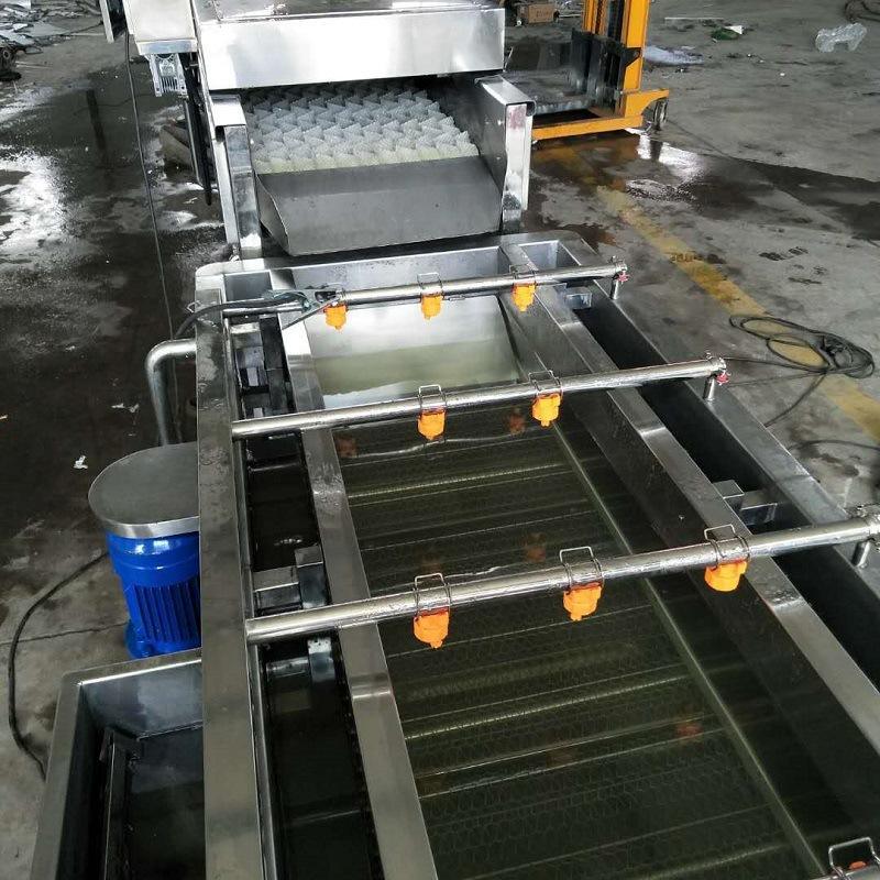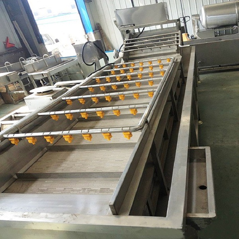 叶菜类蔬菜气泡清洗机 圣女果清洗机设备自带循环水箱,喷淋清洗机水槽中的水经过滤后,再由离心泵加压输送回水槽,节水节能,气泡喷淋清洗机设备的装置均可以拆卸,清洗更方便,安装也简便。净菜加工设备通常是链接三四台清洗设备一起工作的,可以达到清洗,去杂质,杀菌,冷却等成套生产工艺同时进行。