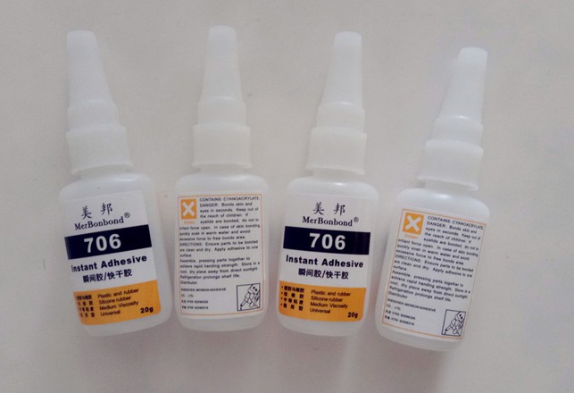 将 M706胶水点在待粘面,再粘合另一面产品压紧数秒即可。15秒左右可定位 , 5分钟后达到将橡胶撕裂也不脱胶的效果