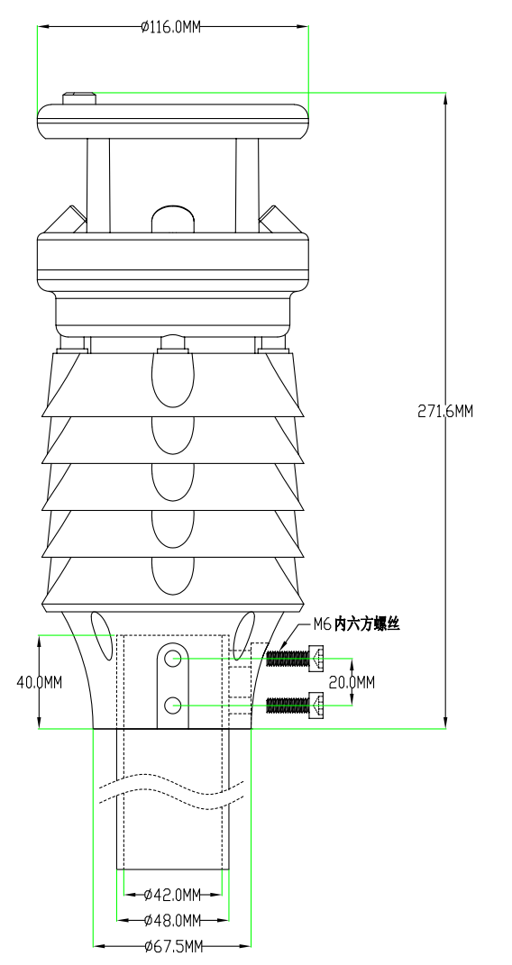 备注说明 1、大气温度、湿度、气压参数集成在一起的传感器安装在一个三层户外防辐射罩内,防辐射罩采用PC+纤维特殊比例配置,内部喷涂隔热层zui大程度减少太阳辐射的影响。无移动部件,保证了长时间测量数据的准确度。