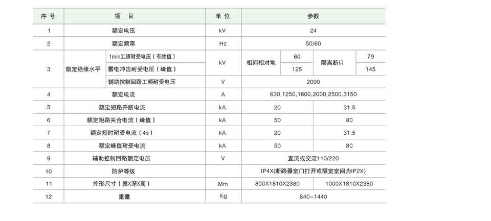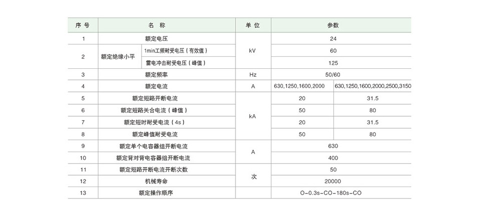 开关设备主要技术参数
