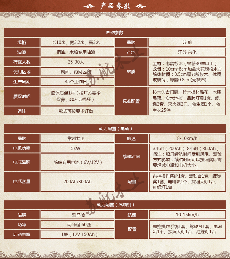 本网页所展示的有关【画舫木船 景区观光船 餐饮船 休闲船 电动船 画舫船 旅游船_船舶_泰州苏航木业有限公司】的信息/图片/参数等由找好货的会员【泰州苏航木业有限公司】提供,由找好货会员【泰州苏航木业有限公司】自行对信息/图片/参数等的真实性、准确性和合法性负责,本平台(本网站)仅提供展示服务,请谨慎交易,因交易而产生的法律关系及法律纠纷由您自行协商解决,本平台(本网站)对此不承担任何责任。您在本网页可以浏览【画舫木船 景区观光船 餐饮船 休闲船 电动船 画舫船 旅游船_船舶_泰州苏航木业有限公司】有关的信息/图片/价格等及提供【画舫木船 景区观光船 餐饮船 休闲船 电动船 画舫船 旅游船_船舶_泰州苏航木业有限公司】的商家公司简介、联系方式等信息。