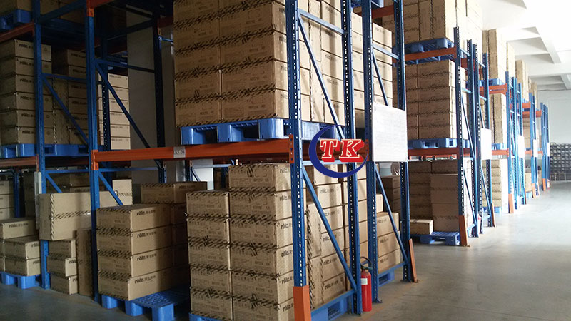 托盘货架是指摆放时用托盘作为容器存储货物的货架。所以与一般货架相比,托盘货架它主要是摆放托盘,而货物则是放置存储在托盘上。在货架领域,一般我们将托盘货架基本等于同于重型货架。因此也常称为重型货架。然而因为货架上只需要支持托盘,因此可以不需要层板,每层只需要横梁撑托住托盘即可,因此托盘货架又经常被称为横梁式货架。