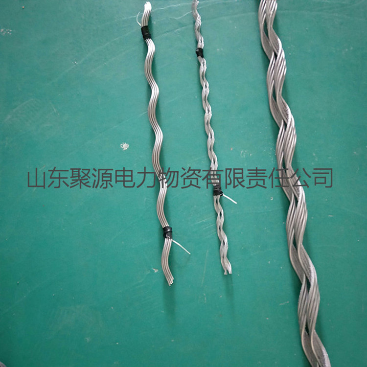 特点:1.全张力接续条的握紧力可达绞线的额定断裂张力,导电性优于等长钢芯铝绞线;2.全张力接续条可以恢复钢芯铝绞线的断裂张力和的导电性。 使用说明: 1.无论导线新旧与否,必须将钢芯及铝绞线安装接续条的长度范围内表面彻底打磨,使表面光亮和干净后,在表面立即涂上一层高质量,与导线匹配的导电脂,然后开始安装;2.当接续条的中点和导线上损坏点对齐安装时,全张力接续条的尾端距离已安装好的预绞式护线条或预绞式短护线条的尾端不小于150mm,只有导线上的损坏点在支撑点或在近损坏点之外,才可以采用此种接续条,并发挥接续条的上述维修技能;3.全张力接续条不能重复使用。