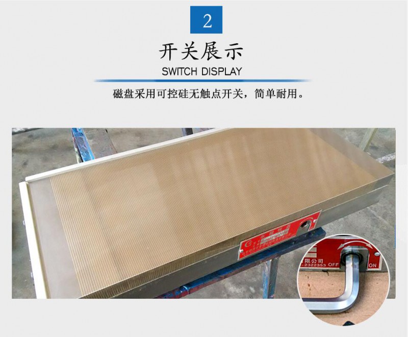 将该设备安装固定在相应的工作平台上,将需要加工的工件进行吸持处理,磁力大方便使用,可长时间放于切削液中使用。