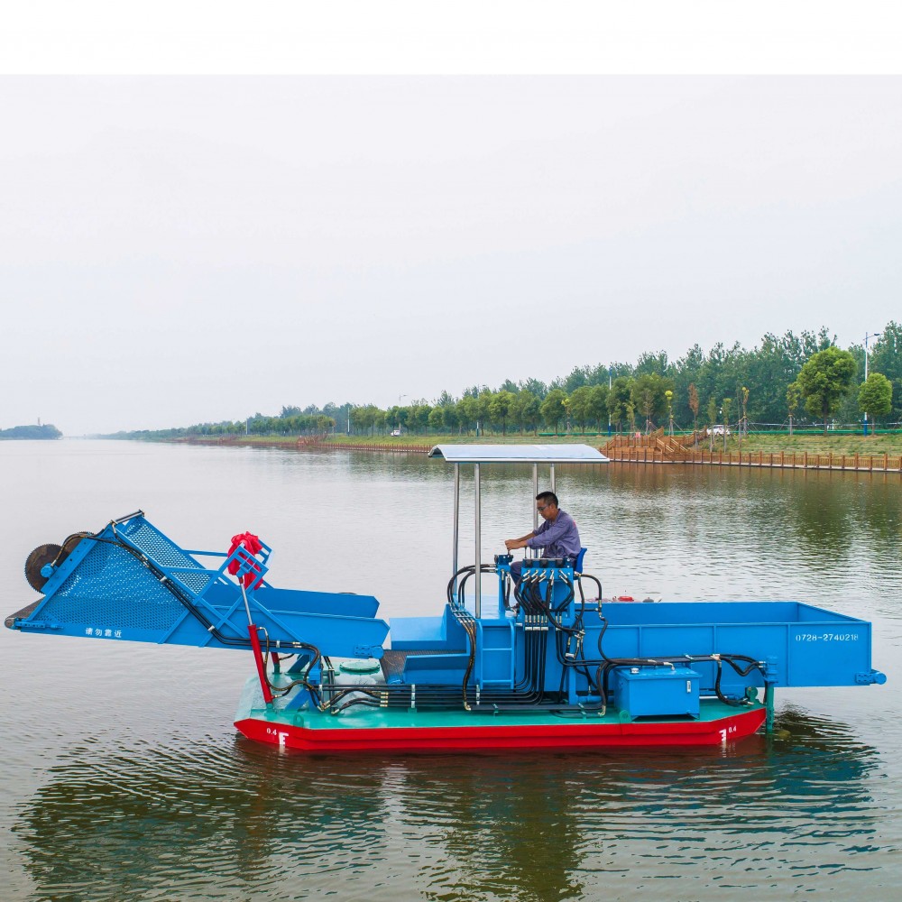 万英割草船(又叫保洁船、收集船、打捞船、清洁船、清漂船)是一套集割,集,钓,水过滤,运输,卸载为一体的现代水草,水葫芦采伐设备。所有操作程序均采用全液压控制,简单,方便,灵活,是城市供水区域可靠的清洗设备,也可作为垃圾清运船的使用,湖水都收到了良好的效果。产品特征: