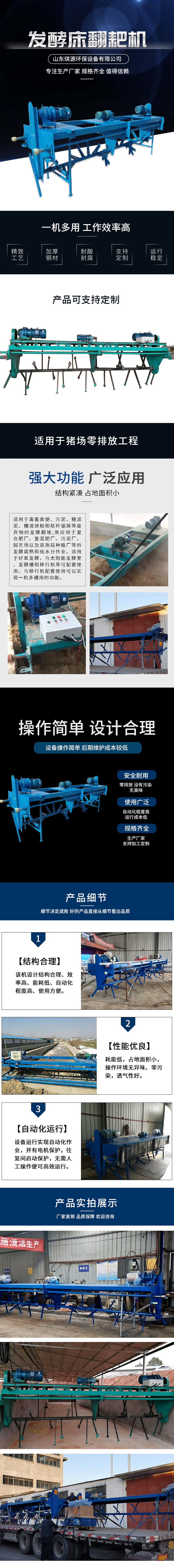 航车式翻抛机沿发酵槽行走作业,起高效率翻抛作业,有利于加快发酵槽内物料发酵腐熟,降低水分和提高堆肥品质。该机系列规格可满足多种发酵槽宽度。利用翻堆工艺将养猪场猪粪变废为宝生产有机肥,并且能达到一定的利益。