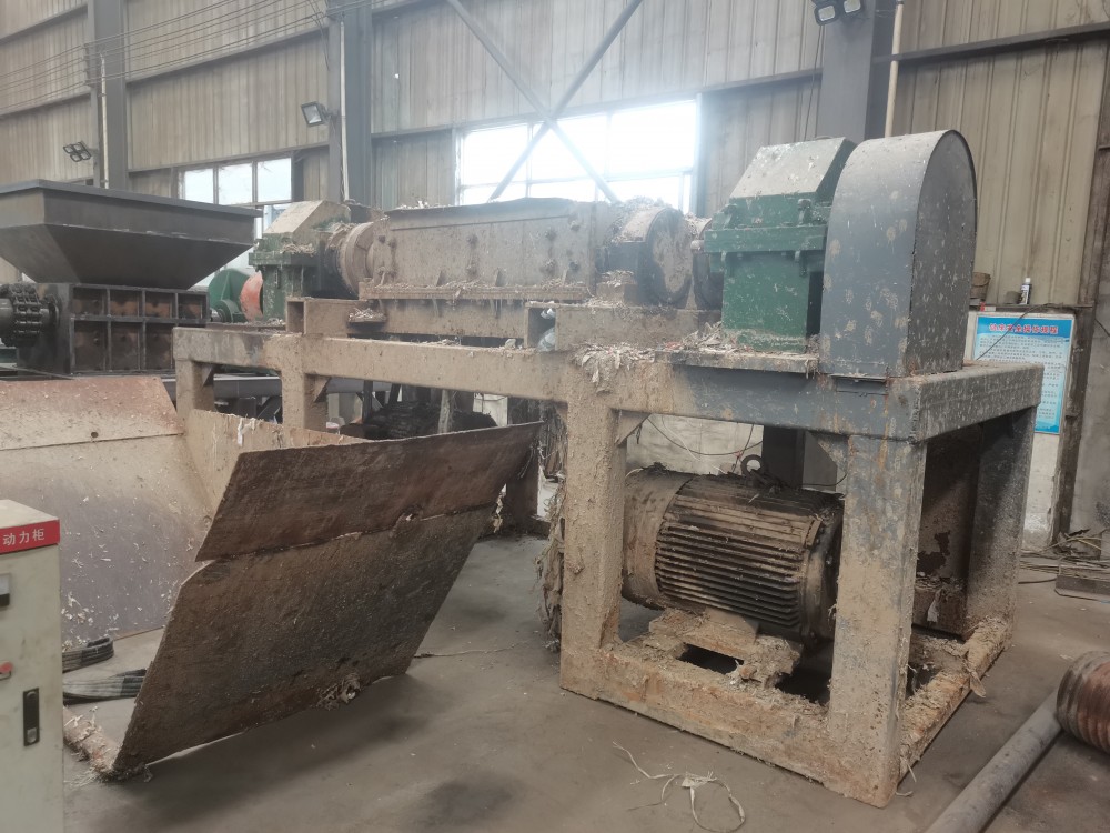 七、废旧塑料撕碎机配备加大号皮带轮增加惯性,可以节约电能,加大撕碎动能输出。