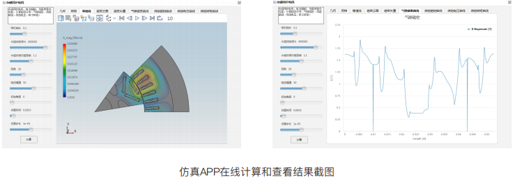 仿真APP界面的开发通过表单的组合实现,界面设置控件包含菜单、命令、标签、输入框、按钮、文本框、分割线、图表等,支持用户快速设置几何、求解监控曲线、结果显示等交互视图窗口,从而快速实现仿真模型的参数化和自动化封装,定制专业仿真APP。