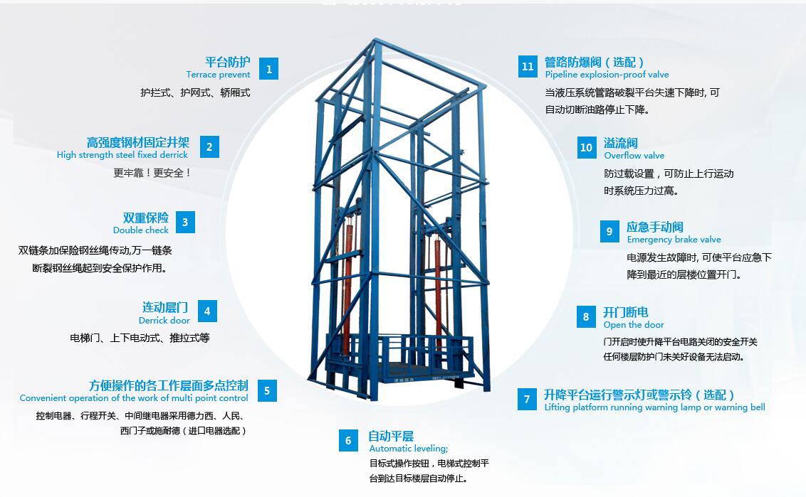 建筑物不同楼层货物升降,快速上下,可更便捷的将大物件运达各个楼层。产品结构坚固,承载量大,升降平稳,安装维护简单方便,是经济实用的楼层间替代电梯的理想货物输送设备。