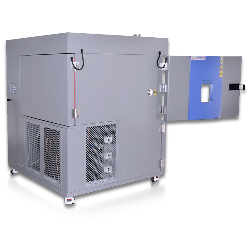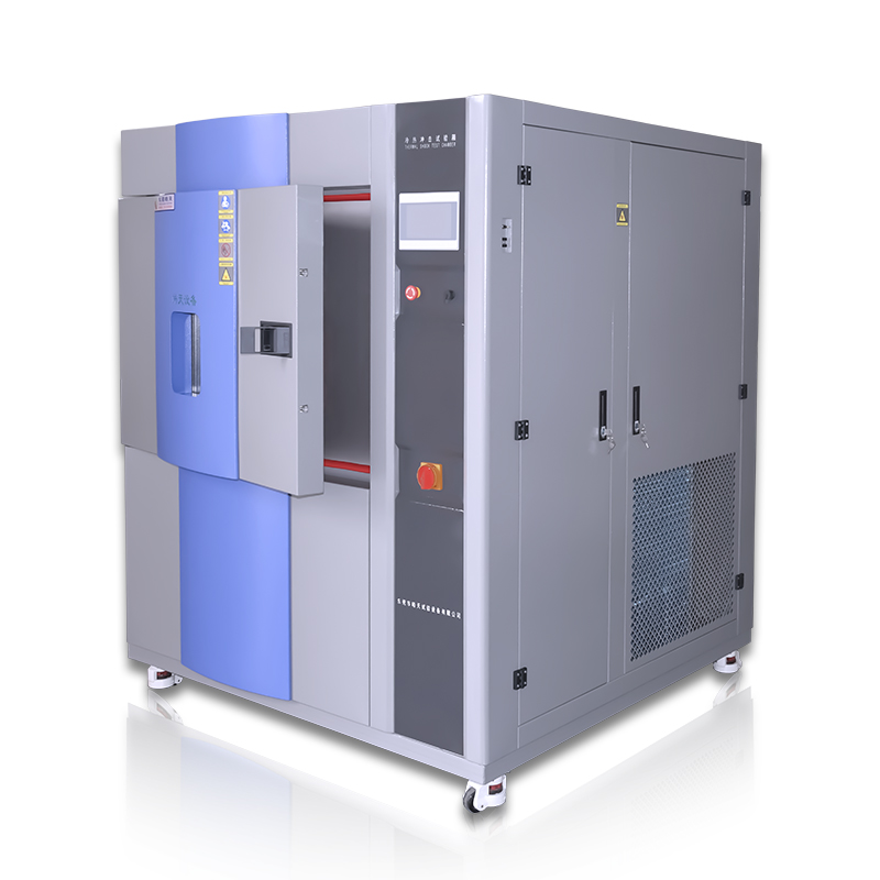 高低温冲击试验箱根据试验需求及测试标准分为三箱式和两箱式,区别在于试验方式和内部结构不同。三箱式分为蓄冷室,蓄热室和试验室,产品在测试时是放置在试验室。两箱式分为高温室和低温室,是通过电机带动提篮运动来实现高低温的切换,产品放在提篮里,是随提篮一起移动的。