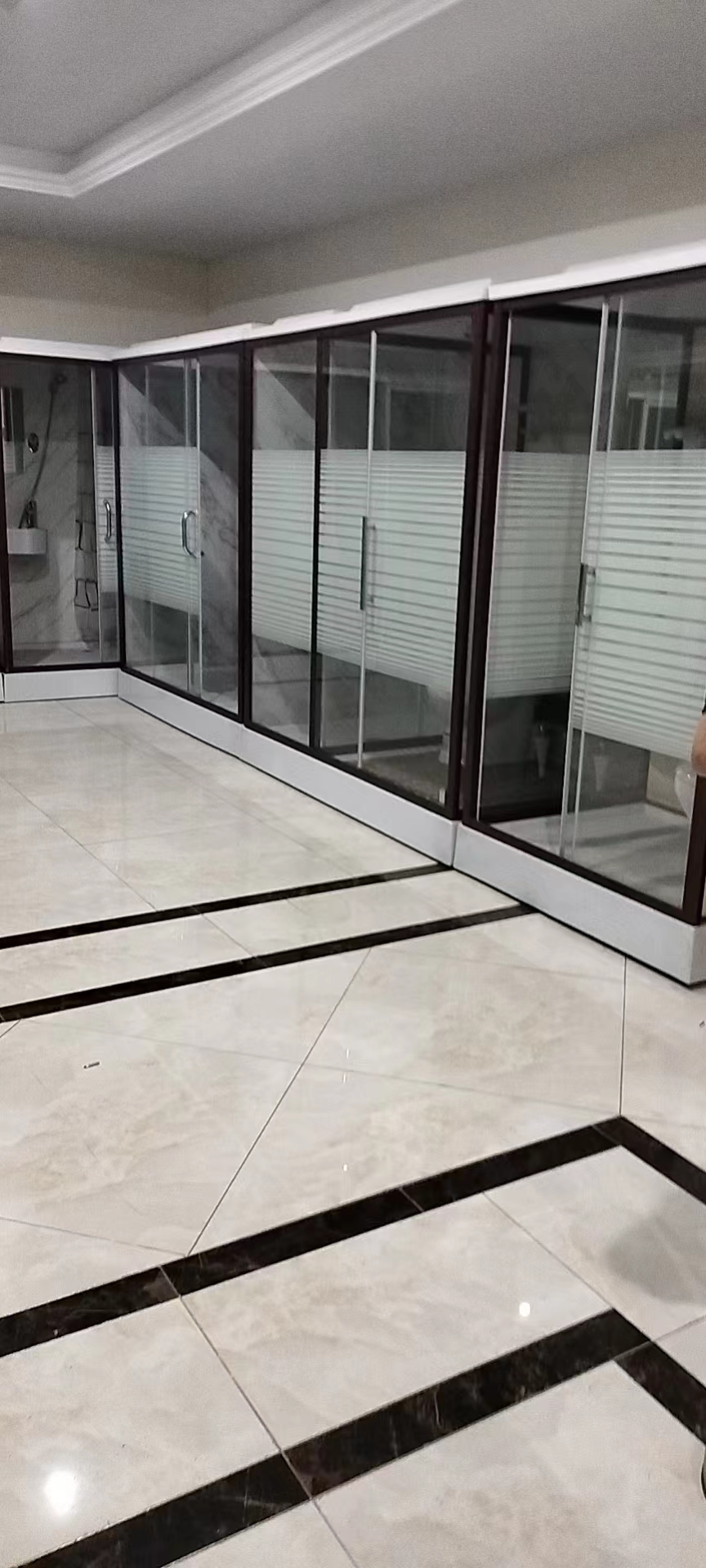 墙板:SMC/亚克力板深木纹与玉石理文相结合