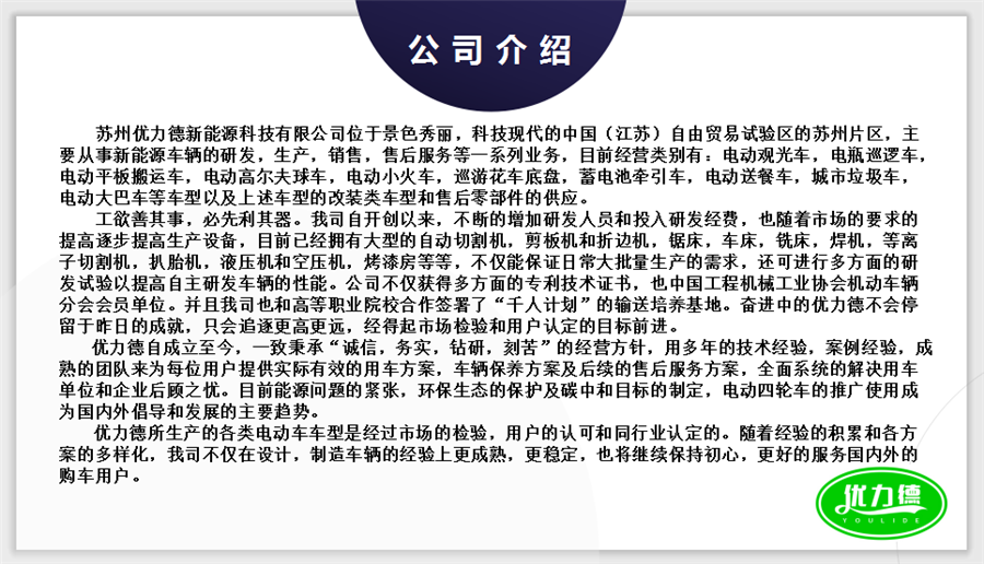 本网页所展示的有关【唐山8吨电动平板货车承重性能好,电动搬运货车源头厂家_其他电动车_苏州优力德新能源科技有限公司】的信息/图片/参数等由找好货的会员【苏州优力德新能源科技有限公司】提供,由找好货会员【苏州优力德新能源科技有限公司】自行对信息/图片/参数等的真实性、准确性和合法性负责,本平台(本网站)仅提供展示服务,请谨慎交易,因交易而产生的法律关系及法律纠纷由您自行协商解决,本平台(本网站)对此不承担任何责任。您在本网页可以浏览【唐山8吨电动平板货车承重性能好,电动搬运货车源头厂家_其他电动车_苏州优力德新能源科技有限公司】有关的信息/图片/价格等及提供【唐山8吨电动平板货车承重性能好,电动搬运货车源头厂家_其他电动车_苏州优力德新能源科技有限公司】的商家公司简介、联系方式等信息。