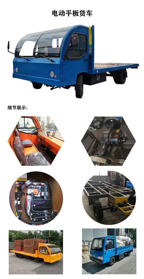 电动平板货车也称之为电动平板搬运车,是一种新型的场地车辆,该车运载能力强,灵活多变,车身长短和宽度均可定制用户所想要的尺寸,小吨位、大吨位皆能满足不同用户的需求,我司所涉及的案例众多,技术娴熟,工艺完善,质量有保障。随着载重吨位的加大,承重桥的分量也随之加大,以前采用双桥结构,现在优化成并排轮的形式,不仅扩充了空间,也减少了售后零部件。
