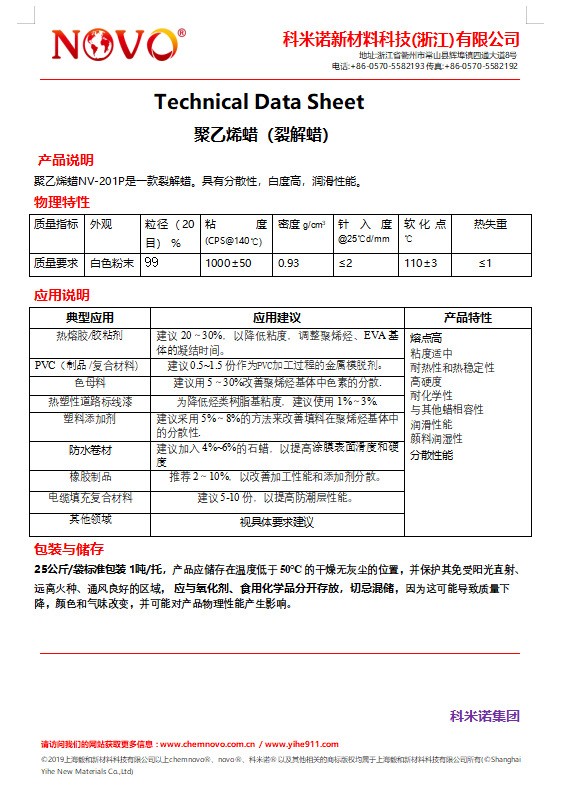2、用于PVC型材、管材和PVC电线电缆粒料的生产。6A与PVC的不相容性使其迁移到产品表面,令产品有良好的光洁度,而且使挤出过程更轻松,降低耗电量。在回收粒料的产品中有分散填充料的作用。