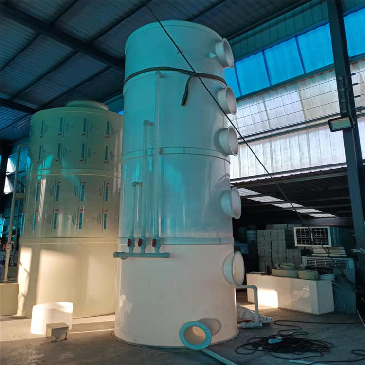 喷淋塔有很多特点,效率较高,采用碱性洗涤水时,可达85%.并且设备占地少,安装方便。在耗水,耗电方面也是较低。并且耐腐蚀,不磨损,使用寿命长。