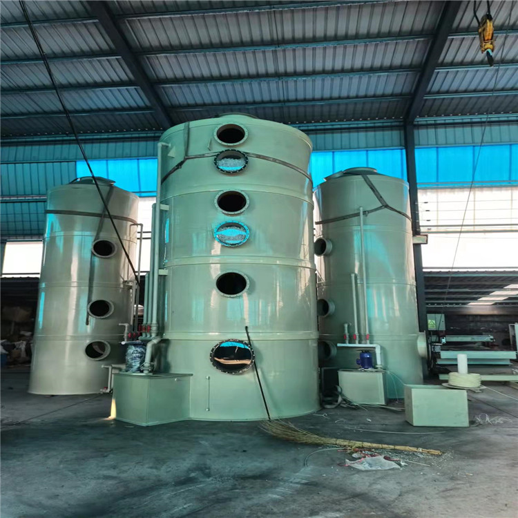 PP洗涤塔的作用是将气体中的杂质用溶剂反应而除掉,可用于各种产生需洗涤气体的行业。废气废液进入塔内,与塔内的洗涤液充分接触,可以除去杂质,达到净化气体的作用。 本身包含有本体、填充层、除雾层、循环洒水管路,及循环水槽等。