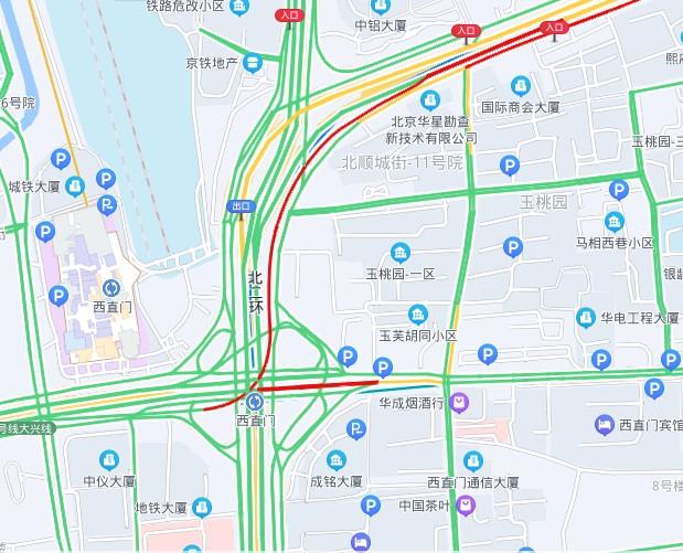 北二环向北三环方向及西直门内大街方向需提前从北二环33出口进入辅路。