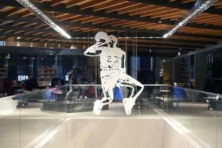 在这家东京原宿的耐克旗舰店,美国雕塑艺术家Micheal Murphy和耐克合作,利用3D打印出了乔丹的经典动作,而从侧面观看,则是乔丹的23号球衣。