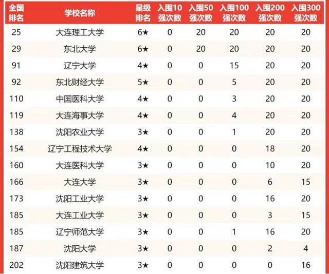 在这份榜单中,大连理工大学、东北大学、辽宁大学居榜单前3名,是辽宁省最好的3所大学,居国内高校百强行列,紧随其后的为东北财经大学、中国医科大学、大连海事大学、沈阳农业大学等。