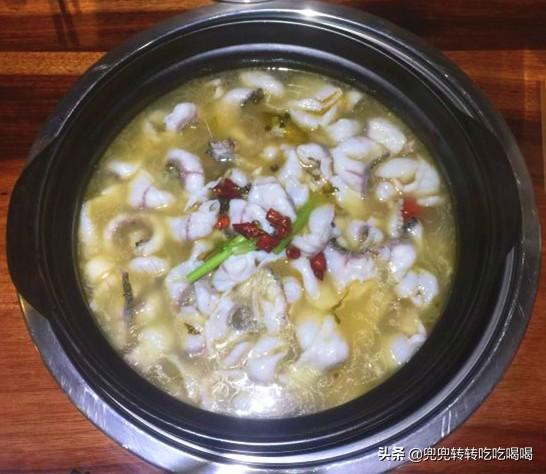 青花椒鱼还是应该用黑鱼,每片薄薄的,煮熟后微微卷,鱼刺不多,但还是有的,汤底鲜美,鱼肉嫩滑。